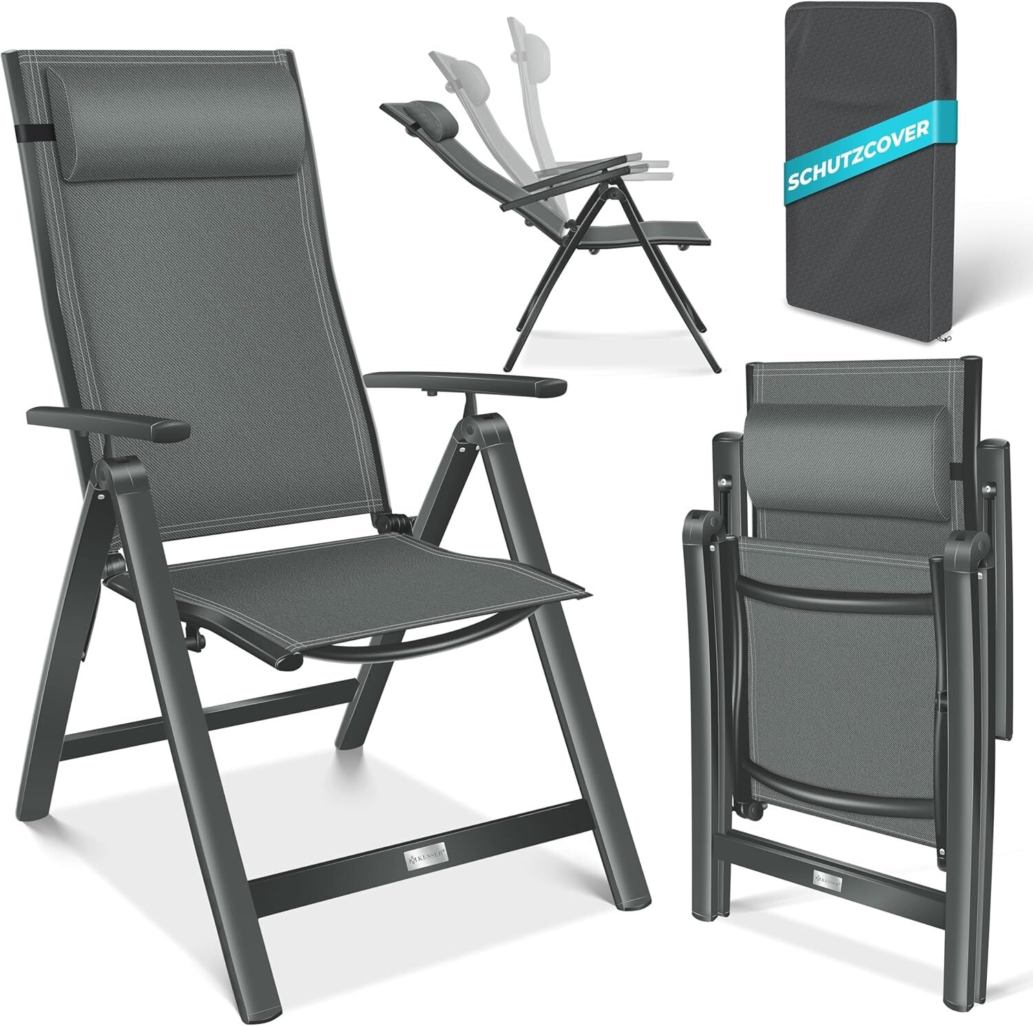 | Name | KESSER® Gartenstuhl Hochlehner mit Armlehnen | Aluminium Klappstuhl inkl. Kopfkissen Campingstuhl 7-Fach Verstellbar Rückenlehne | Atmungsaktiv & Wetterfest | Klappbar & Anti-Rutsch Anthrazit, 1 Stück |