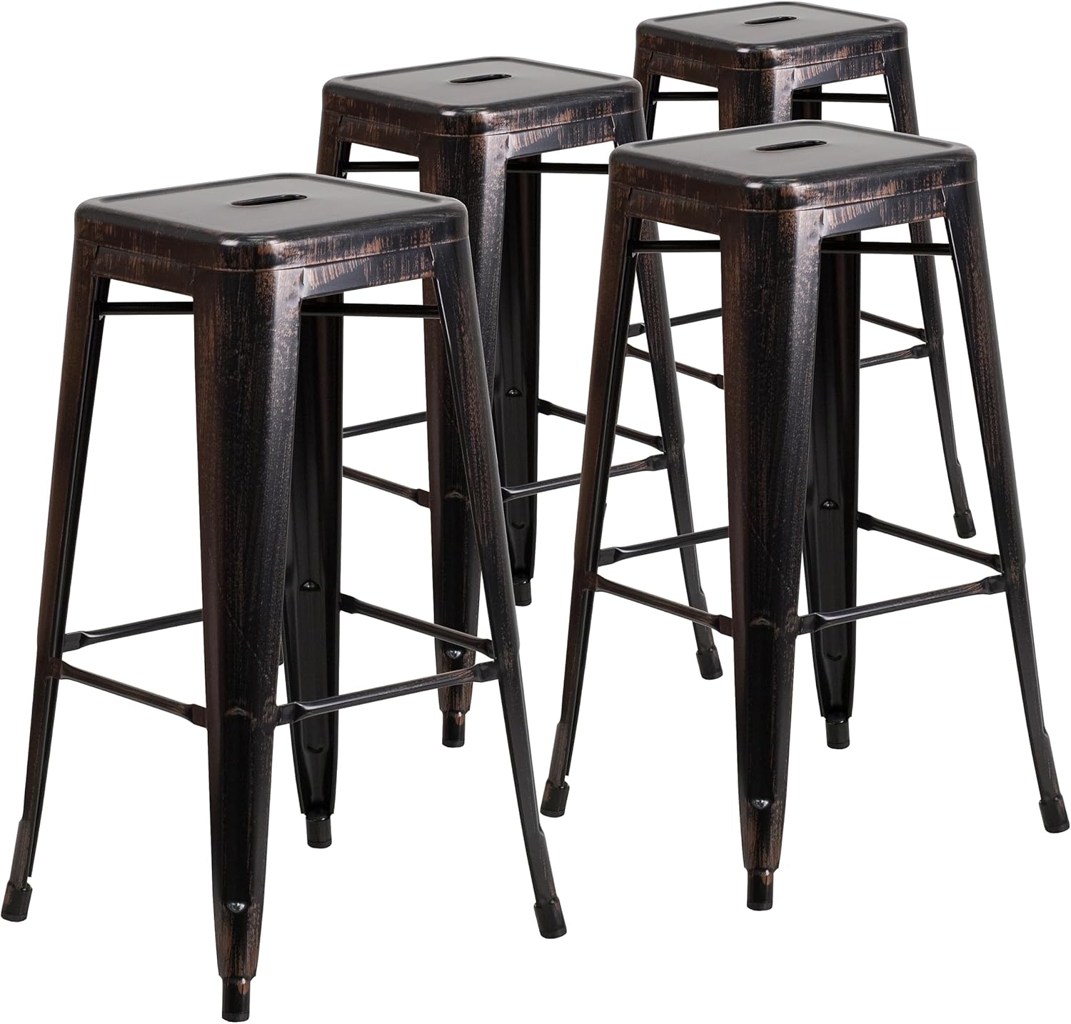 | Name | Flash Furniture Lily Barhocker, kommerzielle Qualität, 76,2 cm hoch, rückenfrei, schwarz-antik-Gold, Metall, für drinnen und draußen, mit quadratischem Sitz, 4 Stück |