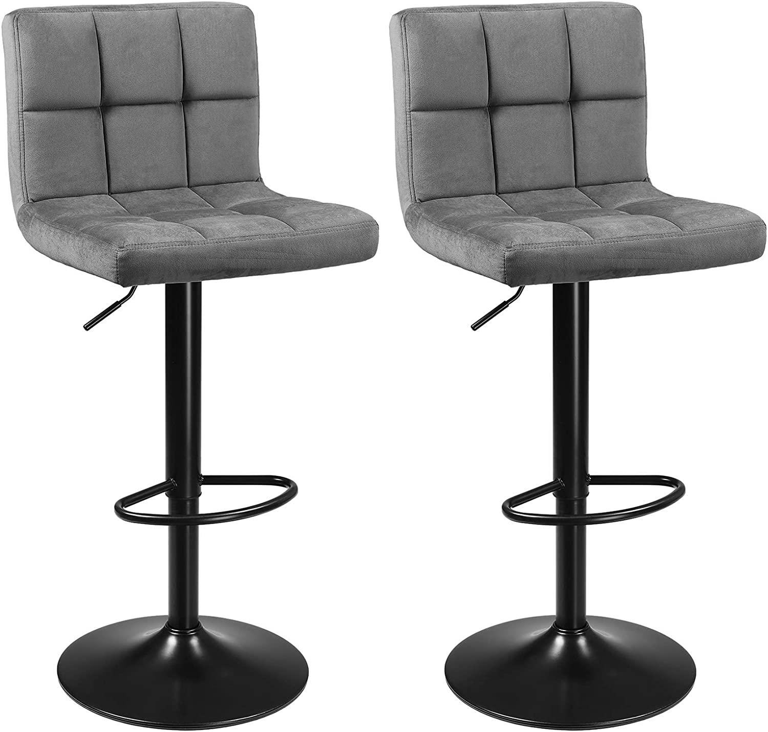 Songmics Barhocker2er Set, Barstühle, mit Samtbezug, höhenverstellbar, Drehstühle, Küchenstühle mit Rückenlehne und Fußstütze, Metall, dunkelgrau LJB014G01