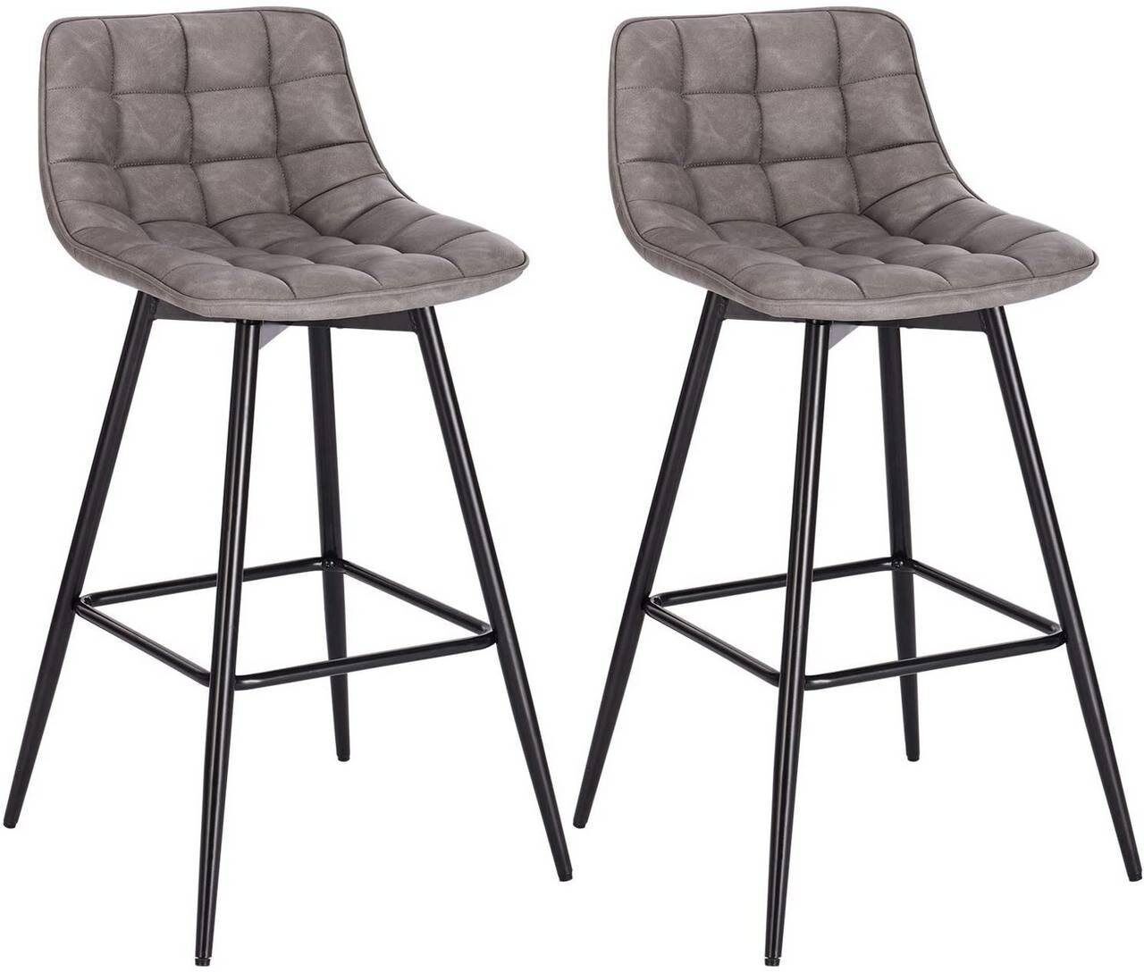 2er-Set Designer Barstuhl mit Fußstütze Kunstleder, Metallbeine Elif dunkelgrau. Diese hochwertigen Barhocker aus Kunstleder und Metall bieten stabilen Sitzkomfort. Perfekt für Bars, Imbisse und Cafés. Passend für moderne Inneneinrichtungen. Einfacher Aufbau dank detaillierter Anleitung. Erstklassige Materialien sorgen für Qualität. Jetzt zum günstigen Preis erhältlich. **Highlights** - Hohe Lebensdauer durch stabiles Metallgestell - Gut gepolsterte Sitzfläche aus Kunstleder für angenehmes Sitzen - Bodenschoner zum Schutz vor Kratzern - Ergonomisch abgerundete Ecken und Kanten - Stabile und hochwertige Verarbeitung **Produkteigenschaften** - Material des Gestells: Stahl - Material der Sitzfläche: Kunstleder - Gesamthöhe: ca. 88 cm - Sitzhöhe: ca. 64 cm - Sitzfläche: 43 × 35,5 cm (B x T) - Höhe der Rücklehne: ca. 23,5 cm - Belastbarkeit: 100 kg - Farbe: dunkelgrau **Lieferumfang** - 2 x Barhocker - 1 x Anleitung auf Deutsch
