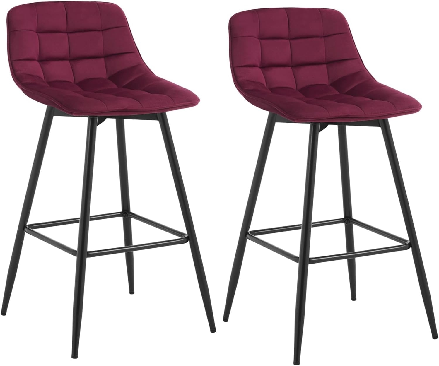 2er-Set Designer Barstuhl mit Fußstütze SamtMetallbeine Elif bordeaux