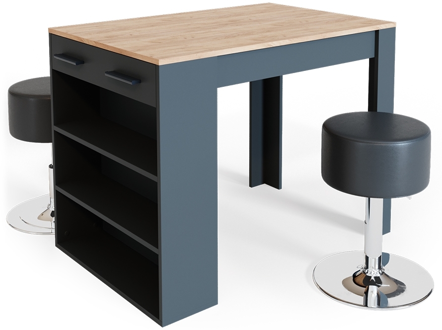 Esstisch-Set Repose Anthrazit/Goldkraft Eiche 67 x 100 cm mit 2 Hockern Vicco