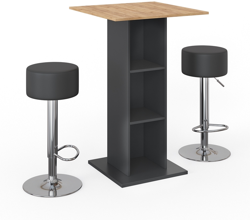 Bartisch-Set Rodeo Anthrazit 70 x 70 cm mit 2 Barhockern Vicco