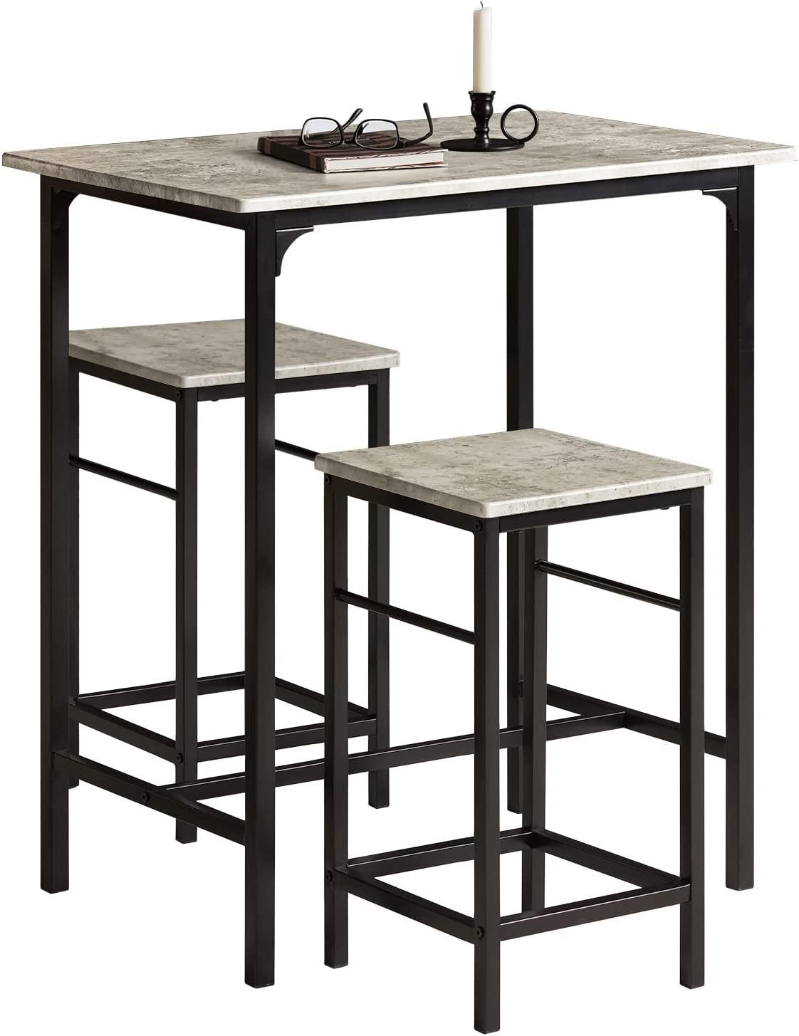 SoBuy OGT10-HG Bartisch Set 3-teilig Bistrotisch mit 2 Stühlen Esstisch Sitzgruppe grau