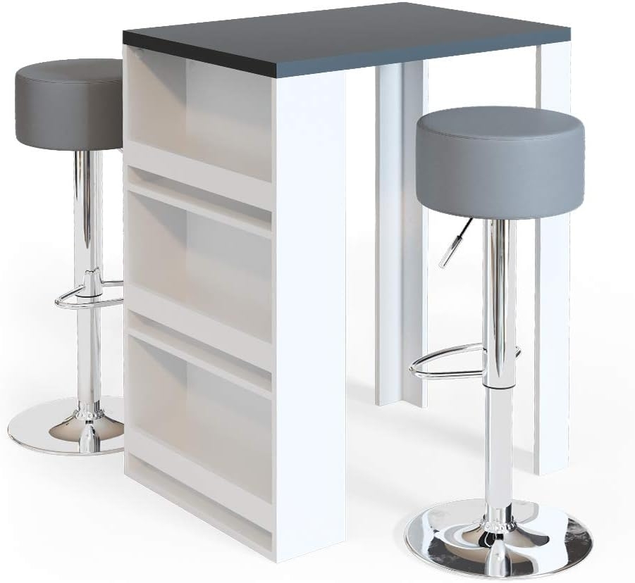 | Name | Bartisch-Set Anthrazit/Weiß 57 x 80 cm mit 2 Barhockern Vicco |