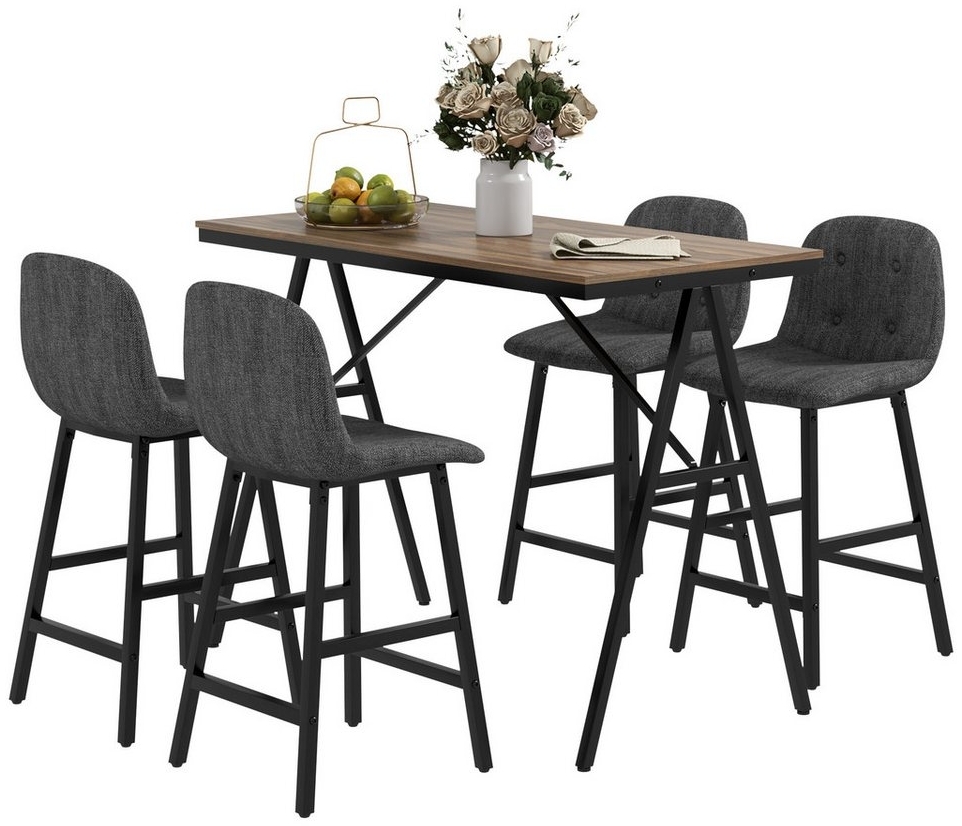 HOMCOM Bargruppe KüchentischBistrotisch mit 4 Stühlen, Bartisch Set für Küche, (Bartisch-Set, 5-tlg, 5-teiliges Bartisch-Set), Dunkelgrau+Schwarz