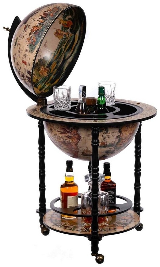 in BartischeRiesiger Barwagen 45001WB01mit massiven Eukalyptusholz Säulen, geöffnet 112 cm hoch und 58 cm breit, Globusbar, Bartisch, Hausbar, Barwagen, Weltkugel, Cocktailbar, Dekobar, Tischbar