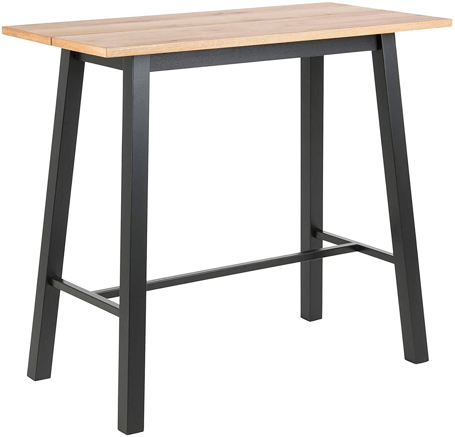 **Ausführung** **Tischplatte:** Wildeiche Furnier (China), ölbehandelt **Gestell:** Eiche Furnier (China), schwarz gebeizt Querstrebe: Metall in schwarz **Ausstattung** stabile Konstruktion pflegeleichte Oberflächen solide Verarbeitung Gewicht ca. 28 kg Lieferumfang 1 Bartisch **Farbe:** Wildeiche-Eiche-Metall B/H/T ca. 117/105/58 cm