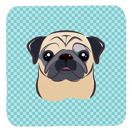 Caroline 'S Treasures Bb1200Fc Schachbrett Blau Fawn Mops Schaumstoff Untersetzer (Set Von 4), 8,9 cm H x 8,9 cm W, Multicolor