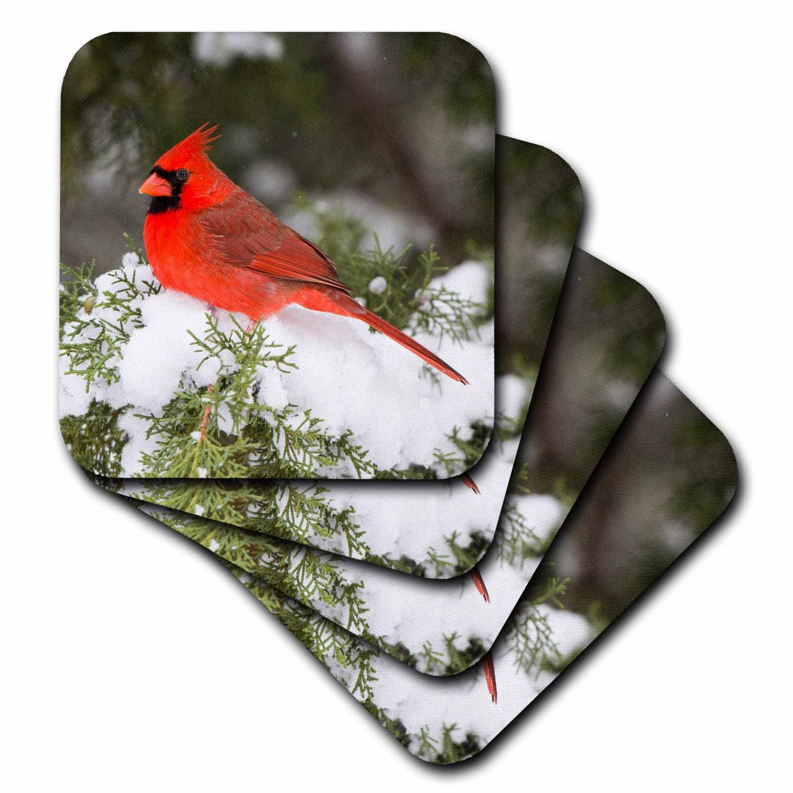 3Drose IllinoisUSA - Northern Cardinal Stecker In Wacholder Baum Im Winter. - Weiche Untersetzer, Set 4 (Cst 209787 _ 1)