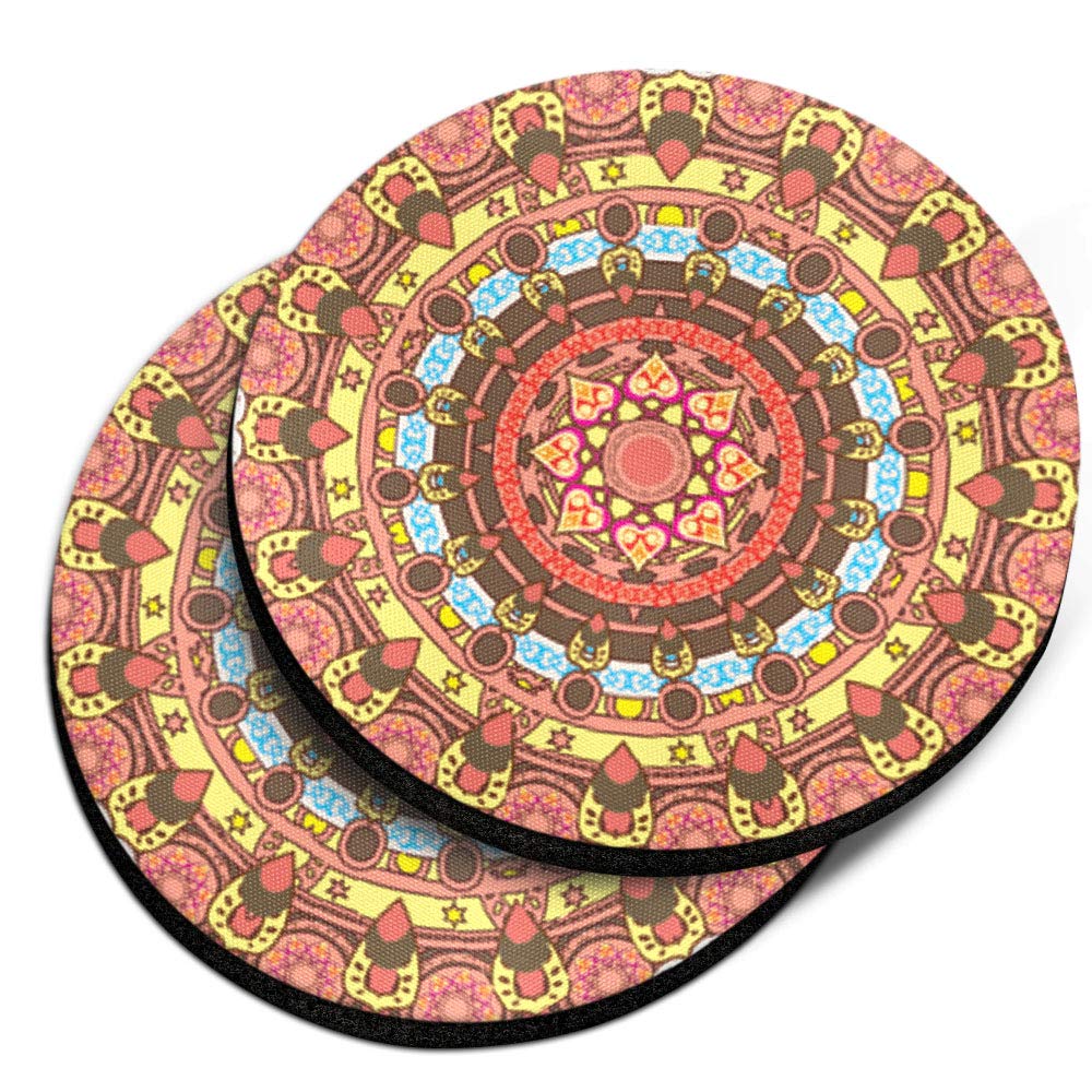 Caribou Untersetzer Cb-Whtrdnc2-2-A2237Cremefarbenes Mandala-Design, Saugfähig, Rund, Stofffilz, Neopren, Auto-Untersetzer Für Getränke (7,1 cm), 2er-Set