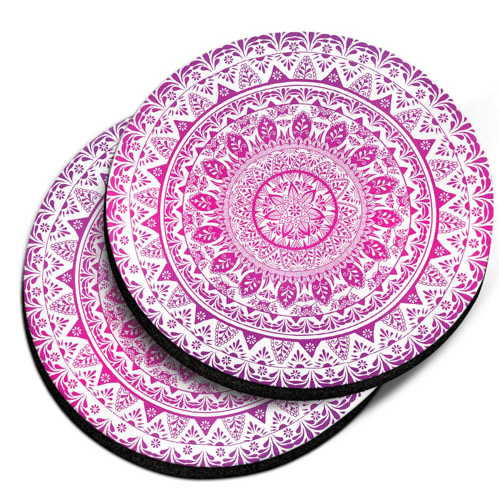 Caribou Untersetzer Cb-Whtrdnc2-2-A4984Violett-Weiß, Mandala-Design, Saugfähig, Rund, Stofffilz, Neopren, Auto-Untersetzer Für Getränke (7,1 cm), 2er-Set