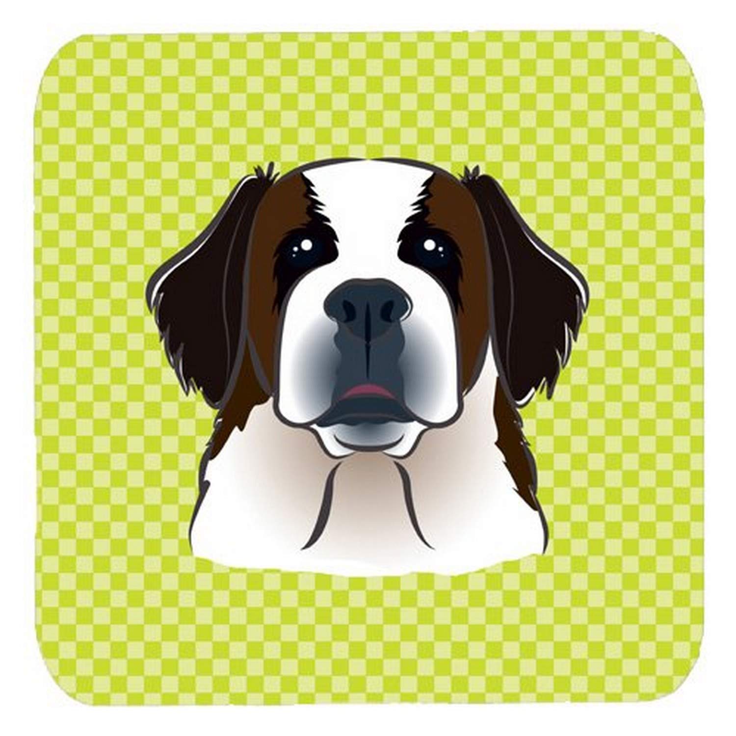 Caroline 'S Treasures Bb1308Fc Schachbrett Lime Grün Saint Bernard Schaumstoff Untersetzer (Set Von 4), 8,9 cm H x 8,9 cm W, Multicolor