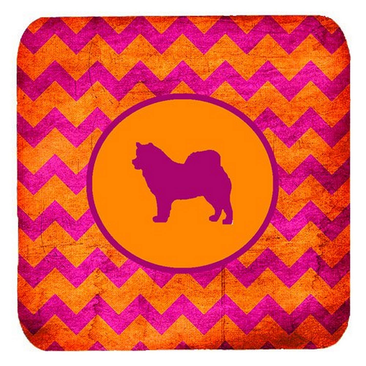 Caroline 'S Treasures Sdk1073-B-Fc Alaskan Malamute Chevron Pink Und Orange Schaumstoff Untersetzer (4 Stück), 8,9 cm H x 8,9 cm W, Multicolor