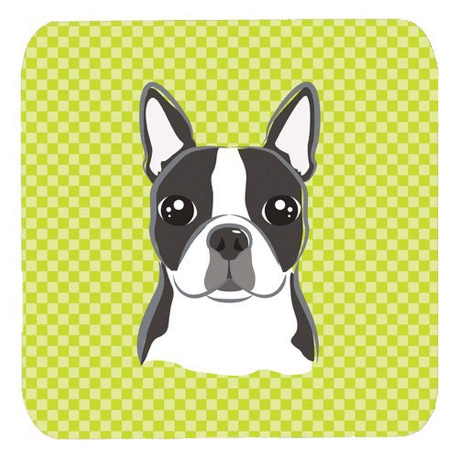 Caroline 'S Treasures Bb1265Fc Schachbrett Lime Grün Boston Terrier Schaumstoff Untersetzer (Set Von 4), 8,9 cm H x 8,9 cm W, Multicolor