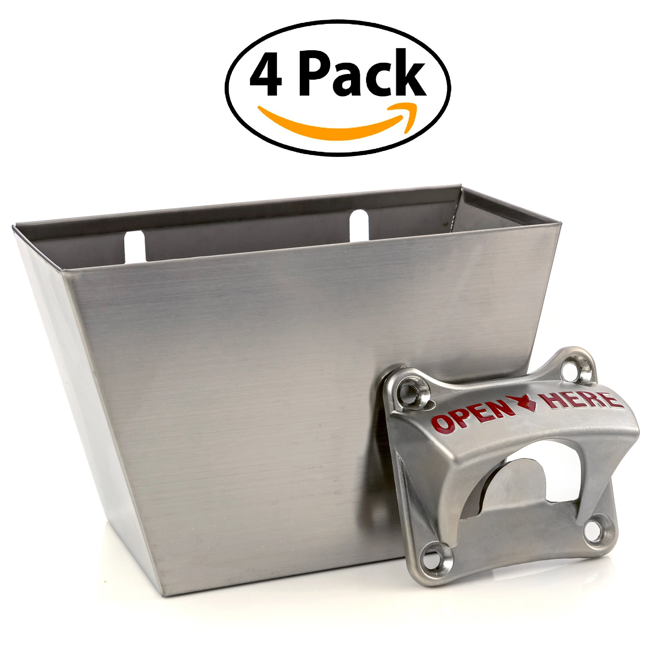 in BarzubehörExtra Schwere Pflicht Und Stärker Mit 4 BefestigungslöcherSoula Designs Wandhalterung Bier Und Soda Flaschenöffner Set Mit Abnehmbarer Edelstahl Cap Catcher Bin, Inklusive Hardware, Reittiere Leicht