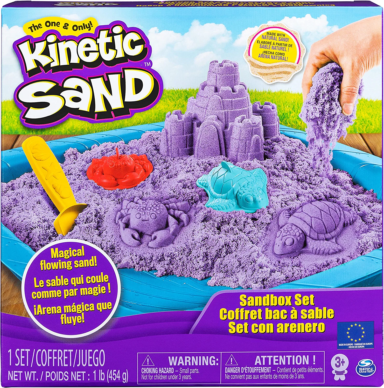 - Der Lieferumfang umfasst 454 g Kinetic Sand in lila, blau oder grün sowie eine praktische Kunststoffwanne.