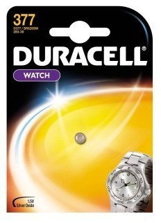 - Die Duracell 377 ist eine Silberoxid-Batterie mit einer Kapazität von 25 mAh
