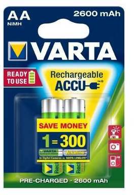 in BatterienVarta Rechargeable Akku Ready2Use vorgeladener AA Mignon 2600mAh Ni-Mh Akku - 2er Pack - wiederaufladbar ohne Memory Effekt - sofort einsatzbereit