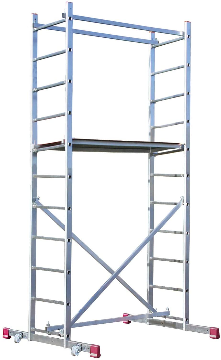 - Dank der integrierten Fahrrollen kann das Gerüst einfach bewegt werden, was die Flexibilität bei der Nutzung erhöht.