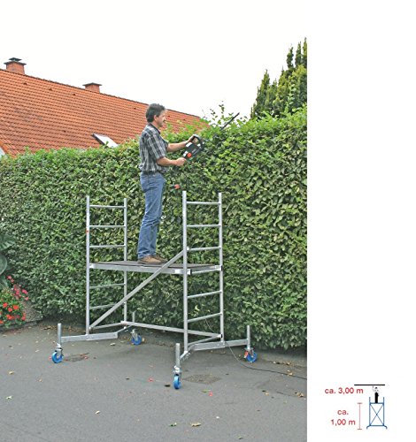 - Das KRAUSE ClimTec Alu-Arbeitsgerüst hat eine maximale Arbeitshöhe von 3 m und eine Belastbarkeit von 200 kg/m² gemäß DIN EN 1004-1.