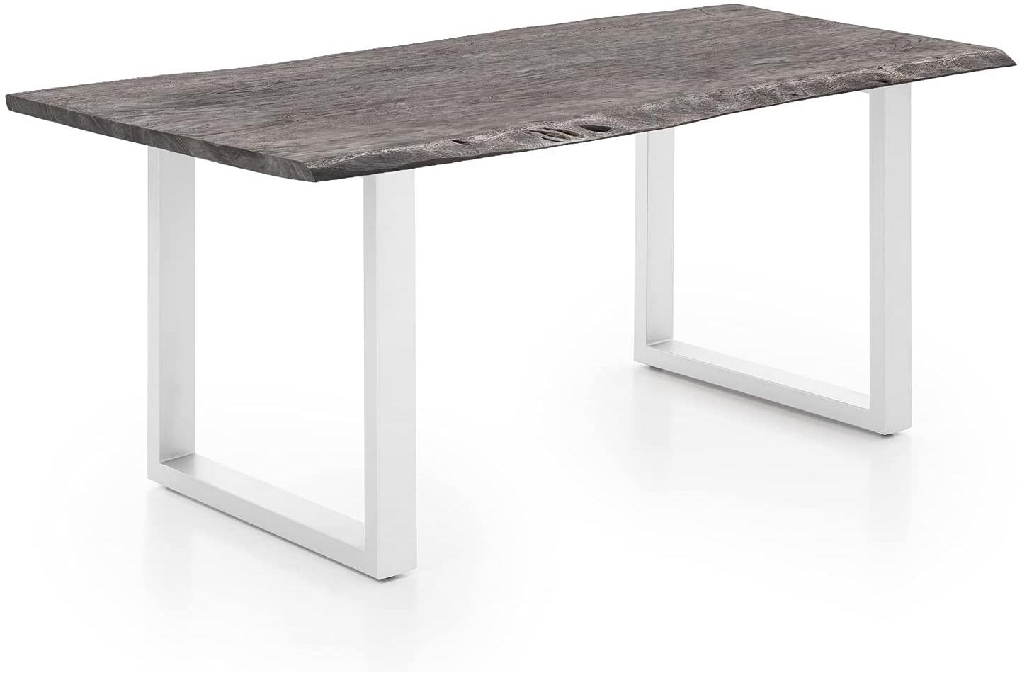 Entdecken Sie den Esstisch Bullwer in Grau und Weiß, der durch seine aufregende Farbwirkung und die natürliche Tischplatte aus gemasertem Akazienholz besticht. Die modernen Metallfüße setzen einen stilvollen Kontrast. Die Kanten des Tisches bewahren den ursprünglichen Charakter des Baumstammes. Jedes Stück ist ein Unikat, geprägt von einer einzigartigen Maserung und Unregelmäßigkeiten der Oberfläche. **Highlights** - Natürliche Tischplatte aus gemasertem Akazienholz - Moderne Metallfüße für stilvollen Kontrast - Kanten des Tisches erhalten den ursprünglichen Charakter des Baumstammes - Einzigartige Maserung, Unregelmäßigkeiten und Astlöcher machen jeden Tisch zum Unikat - Akazienholz sandgestrahlt, silbergrau veredelt und matt lackiert **Produkteigenschaften** - Maße: 75 x 90 x 170 cm (Höhe x Breite x Länge) - Farbe: Grau und Weiß - Material: Akazienholz und Metall - Besondere Merkmale: Natürliche Maserung, Unregelmäßigkeiten, Astlöcher - Oberflächenbehandlung: Sandgestrahlt, silbergrau veredelt, matt lackiert - Montage: Füße müssen montiert werden