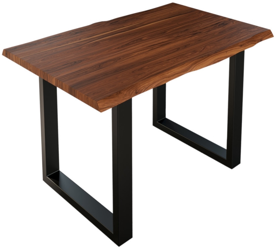 Massiver Esstisch Lauren aus Akazienholz in nougat mit naturbelassener Baumkante. Mit den Abmessungen 120 x 80 cm und einer Tischplattenstärke von ca. 26 mm bietet dieser Tisch Platz für bis zu 4 Personen. Das stabile U-Gestell aus Metall sorgt für eine sichere Standfestigkeit und ist mit herausdrehbaren Füßchen ausgestattet, um Unebenheiten im Boden auszugleichen. Jeder Tisch ist ein einzigartiges Unikat, das durch individuelle Maserungen besticht. **Highlights** - Massives Akazienholz für Langlebigkeit und Stabilität - Naturbelassene Baumkante für ein individuelles Design - Pflegeleichte Tischplatte, lackiert für einfache Reinigung - U-Gestell mit herausdrehbaren Füßchen zur Anpassung an den Boden - Platz für bis zu 4 Personen **Produkteigenschaften** - Länge: 120 cm - Breite: ca. 80 cm - Gesamthöhe: ca. 77 cm - Tischplattenstärke: ca. 2,6 cm - Innenabstand der Tischbeine: ca. 58 cm - Gestellstärke: ca. 8 x 4 cm **Lieferumfang** - 1x Tischplatte - 2x Metallgestell - 1x Montagematerial - Auslieferung ohne Dekorationsmaterial