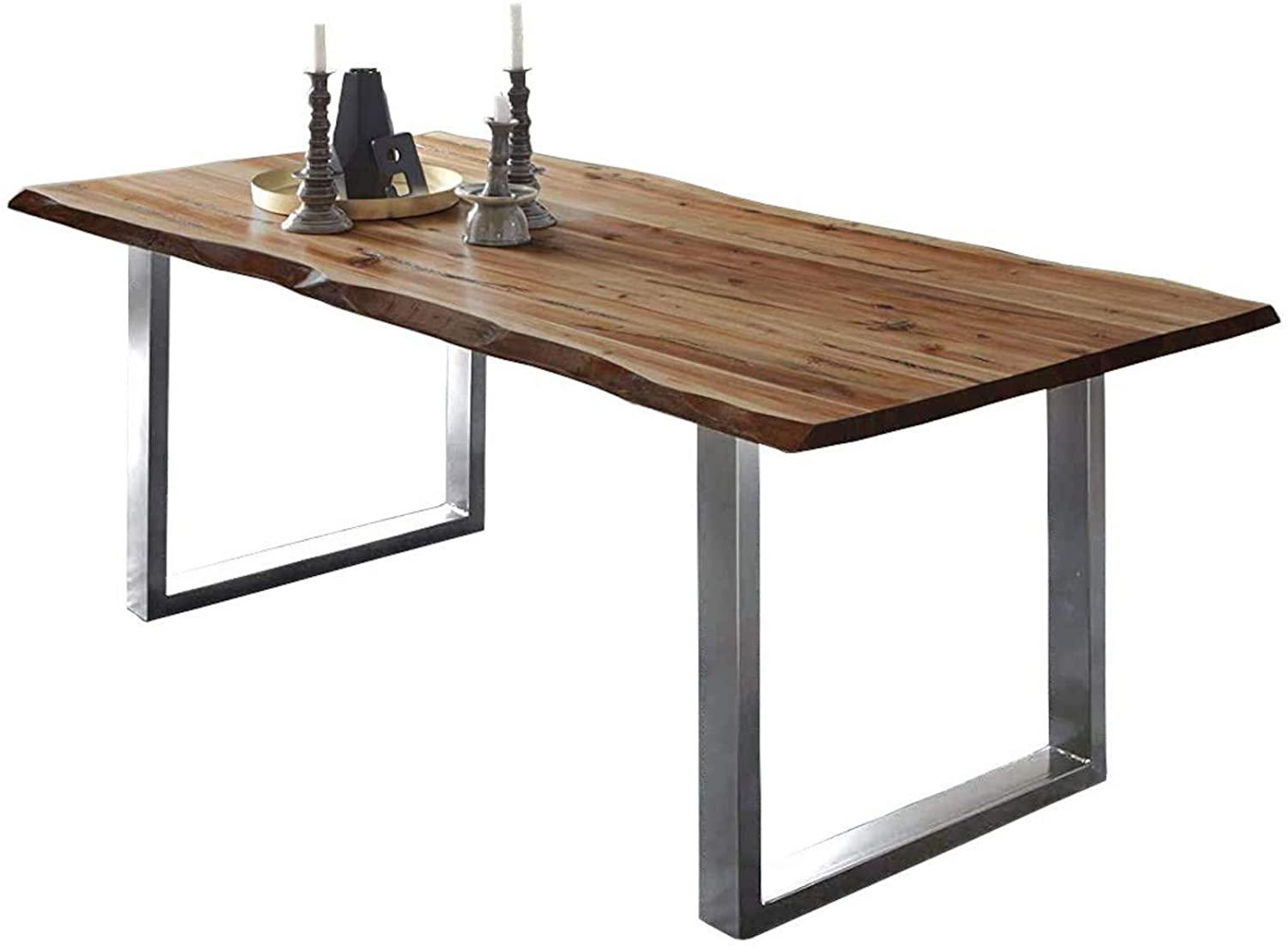 | Name | SAM Esszimmertisch 120x80 cm ULM, Baumkantentisch naturfarben, Akazienholz massiv, U-Gestell Edelstahl gebürstet |