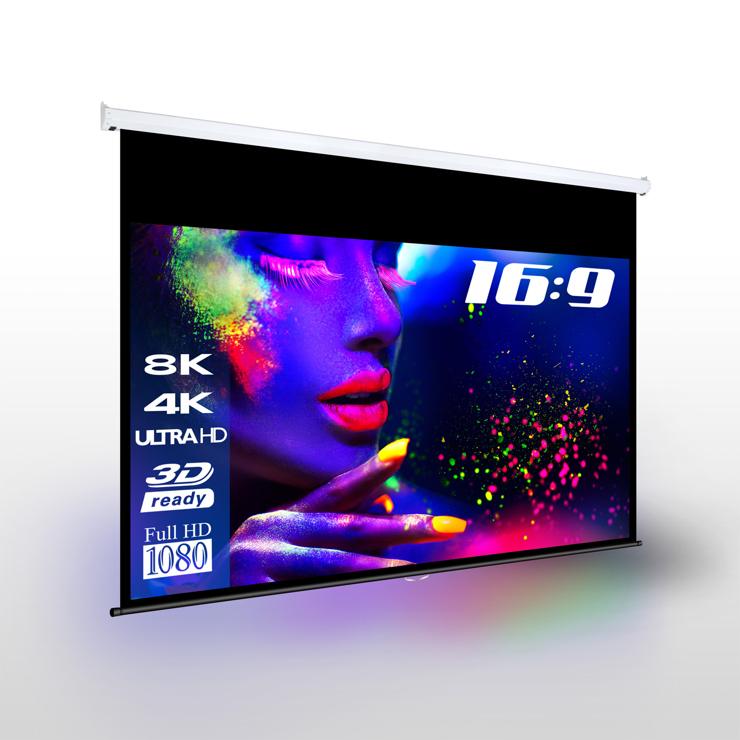 - Die Leinwand kann sowohl an der Decke als auch an der Wand montiert werden und lässt sich einfach und schnell installieren.