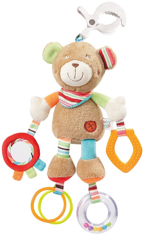 - Das Fehn 091878 Activity-Spieltier Teddy ist ein Motorikspielzeug, das mit spannenden Anhängern ausgestattet ist, die zum Greifen und Geräusche erzeugen einladen.