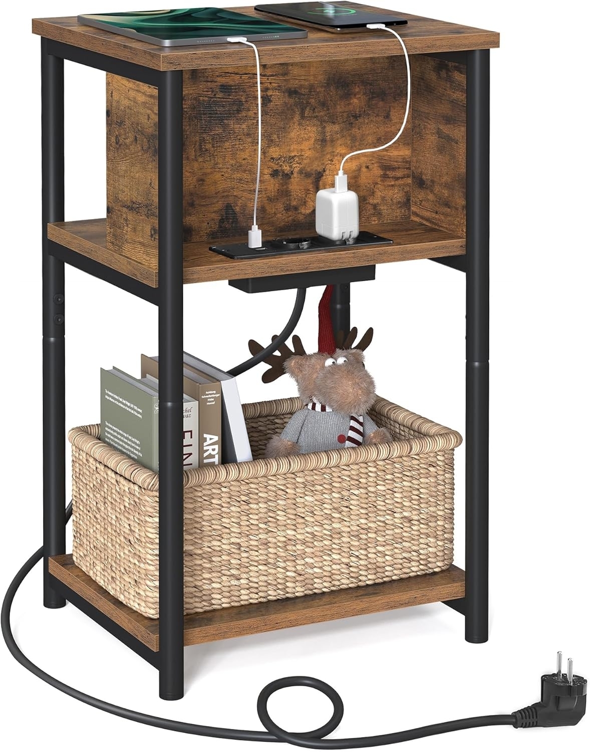 Vasagle Beistelltisch (2-St), mit Steckdose, 2 AC-Anschlüsse, 2 USB-Anschlüssen