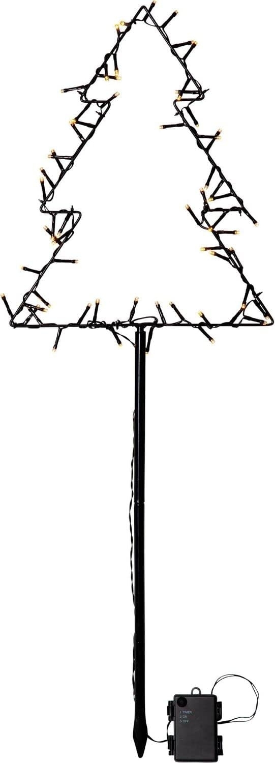 Der LED-Lichterstern "Spiky" ist die perfekte Außendekoration für Ihren Garten. Mit 60 warmweißen LEDs erzeugt er ein stimmungsvolles Licht in der Dunkelheit. Der Stern aus schwarzem Draht ist mit einem Erdspieß ausgestattet und lässt sich einfach im Boden fixieren. Dank der integrierten Zeitschaltuhr können Sie die Beleuchtung auf 6 Stunden an und 18 Stunden aus einstellen. Der IP44 Spritzwasserschutz macht ihn ideal für den Außenbereich. **Highlights** - 60 warmweiße LEDs für stimmungsvolles Licht - Integrierte Zeitschaltuhr (6 Stunden an, 18 Stunden aus) - IP44 Spritzwasserschutz für den Außenbereich - Einfacher Ein- und Ausschalter am Batteriegehäuse - Erdspieß zur sicheren Befestigung im Boden **Produkteigenschaften** - Maße: Länge: 32 cm, Höhe: 90 cm, Tiefe: 2 cm - Kabellänge: 100 cm - Material: schwarzer Draht - Batterien: 3x AA (nicht im Lieferumfang enthalten) **Lieferumfang** - LED-Lichterstern "Spiky" - Erdspieß - Zeitschaltuhr - Batteriegehäuse (Batterien nicht enthalten)