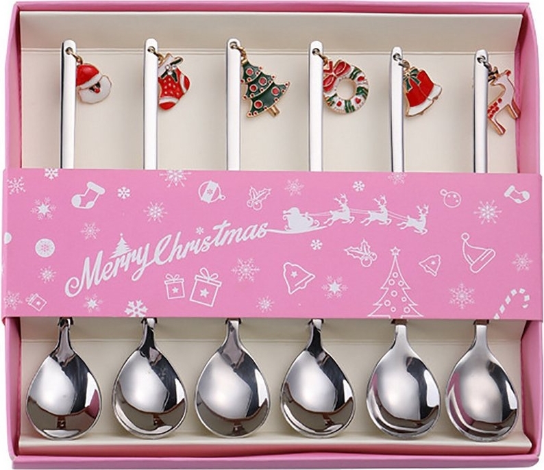 in BesteckeFOUORTUNATE-BEE Teelöffel 6 Stück Weihnachten Teelöffel Weihnachten Löffel Set Kaffee Löffel Edelstahl Weihnachtslöffel Weihnachten Tisch Deko