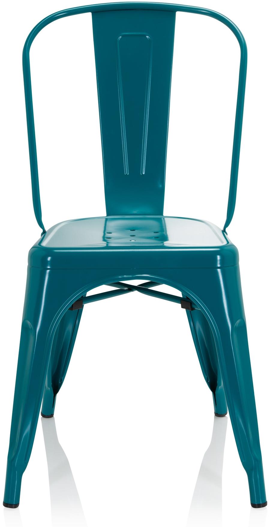 - Der Stuhl hat ein modernes Design in der Farbe Petrol und ein robustes Metallgestell.