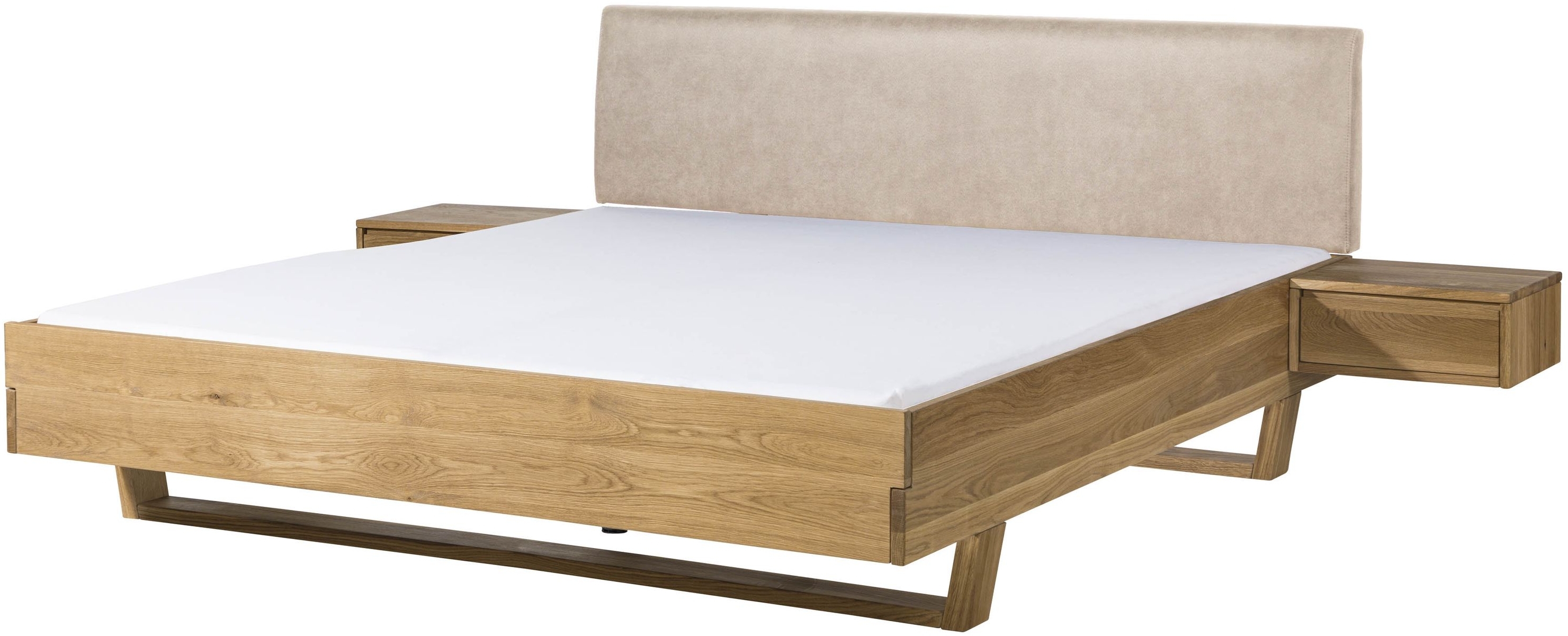 Bett mit Nachttischen Fichte 160x200x85 natur gebeizt geölt, Kopfteil beige FICHTELBERG #146