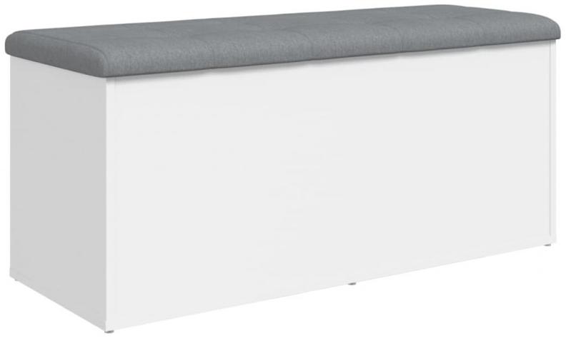 Diese Sitzbank dient nicht nur als gemütliche Sitzgelegenheit, sondern schafft auch zusätzlichen Stauraum. Sie wird ein echter Hingucker in deiner Inneneinrichtung sein. Robustes Material: Holzwerkstoff ist ein Material hoher Qualität mit glatter Oberfläche, das sich durch Festigkeit, Stabilität und Feuchtigkeitsbeständigkeit auszeichnet. Viel Stauraum: Die Flurbank bietet reichlich Stauraum zur ordentlichen Aufbewahrung von Kleidung, Spielzeug, Kissen, Büchern oder anderen persönlichen Gegenständen. Bequeme Sitzgelegenheit: Das integrierte, dick gepolsterte Sitzkissen bietet höchsten Sitzkomfort. Stabile Scharniere: Dank der stabilen Scharniere kann der Deckel offen gelassen werden, um die Hände zum Aufräumen deiner Sachen frei zu haben. Vielseitig einsetzbar: Die Bank lässt sich als Schuhbank im Flur oder als Aufbewahrungsbank im Wohnzimmer verwenden. **Bank:** Farbe: Weiß Material: Holzwerkstoff Gesamtabmessungen (mit Kissen): 102 x 42 x 45 cm (L x B x H) Maximale Belastbarkeit: 110 kg **Kissen:** Farbe: Hellgrau Material: Stoff (100% Polyester) Füllung: Schaumstoff Abmessungen: 100 x 40 x 5 cm (L x B x T) Zusammenbau erforderlich: Ja