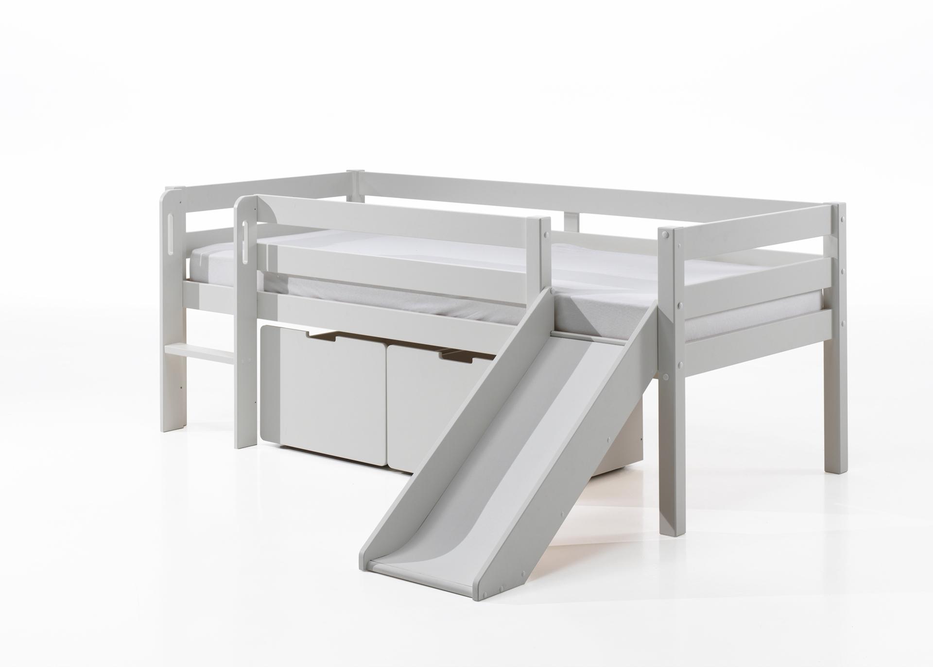 - Das Bett wird mit einer Leiter, einer Rutsche, einem Rolllattenrost und zwei Schubkästen geliefert.