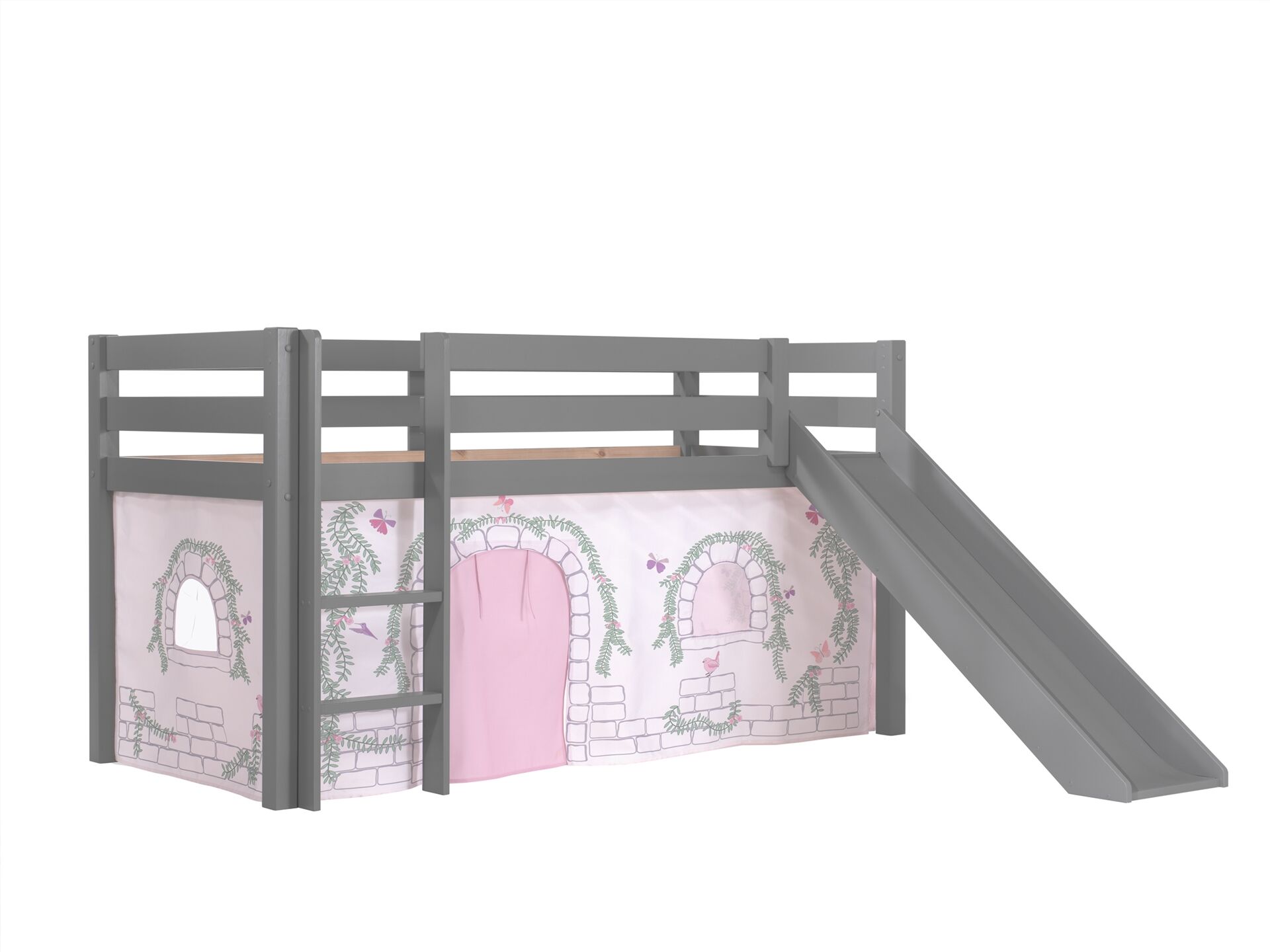 Vipack Spielbett 'Pino' inkl. Rutsche grau mit Textilset Vorhang 'Birdy'