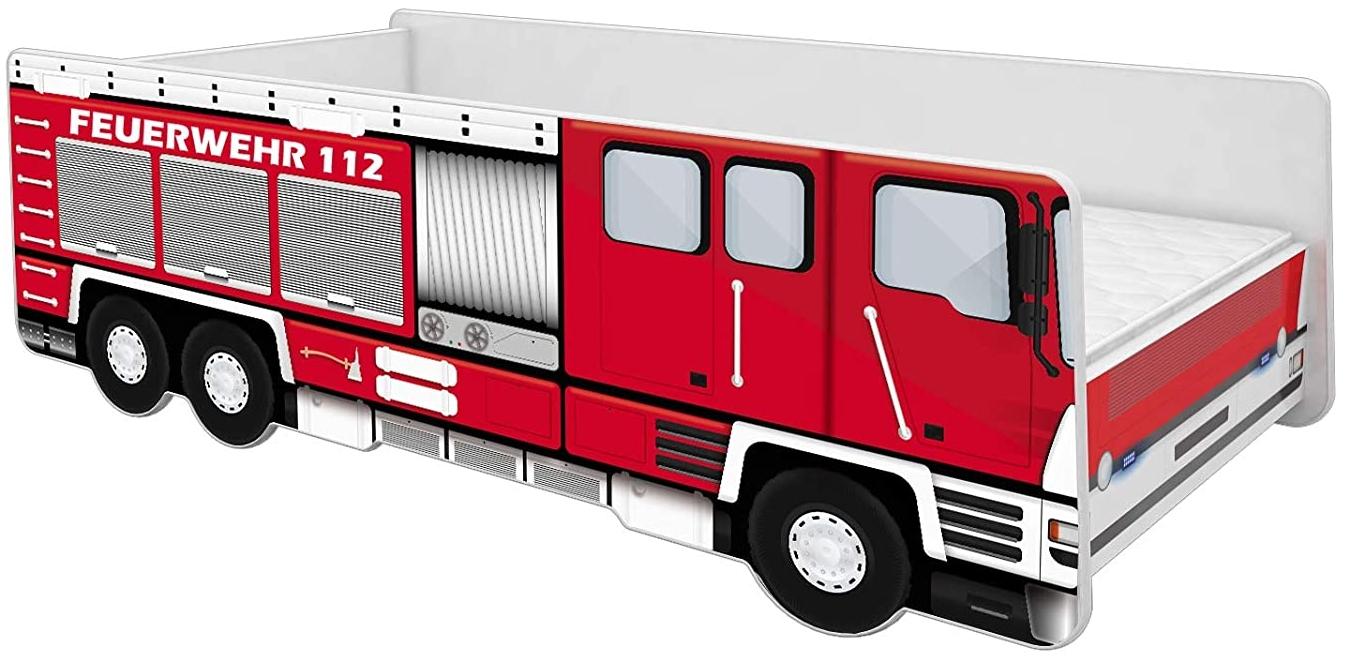 ACMA Kinderbett Auto-Bett Feuerwehr mit RausfallschutzLattenrost und Matratze (140x70)