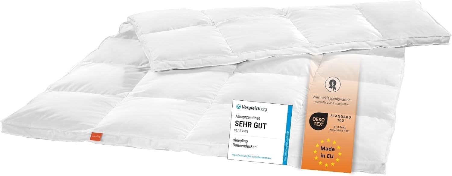 in Bettwäsche: Bettdeckensleepling Daunenbettdecke Komfort DaunendeckeFüllung: 90% Daunen, 10% Federn, Bezug: 100% Baumwolle, waschbar bei 60°C, 5 Wärmeklassen, für Allergiker geeignet NOMITE