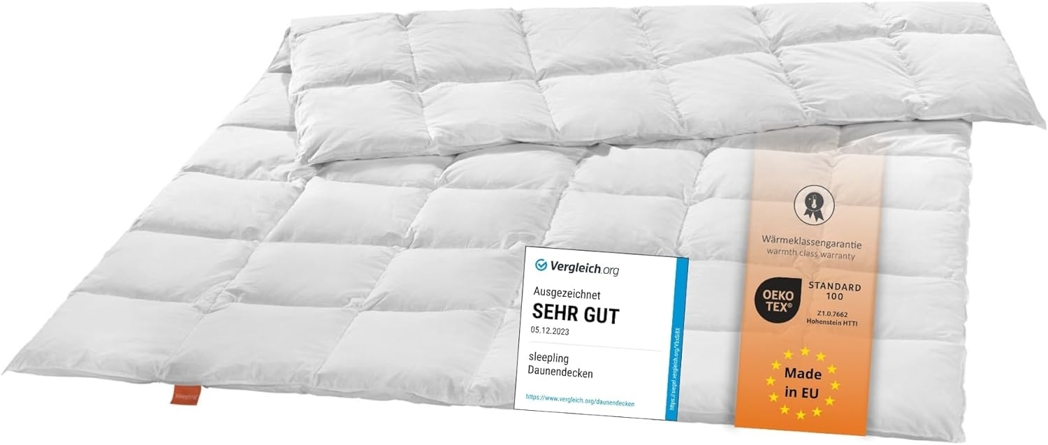 Black Deal in Bettwäsche: Bettdeckensleepling Daunenbettdecke KomfortFüllung: 90% Daunen, 10% Federn, Bezug: 100% Baumwolle, waschbar bei 60°C, 5 Wärmeklassen, für Allergiker geeignet NOMITE