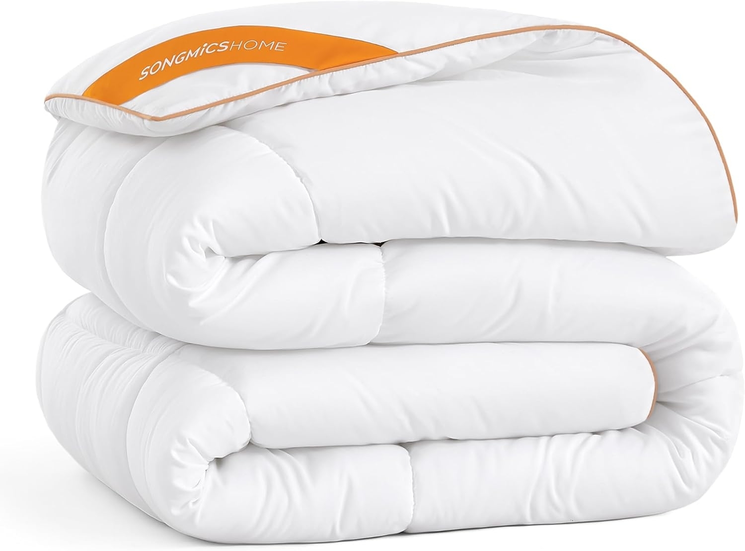 \*\*【WEICH UND ATMUNGSAKTIV】\*\*Hergestellt aus 110 g/m² Mikrofaser und gefüllt mit 7D Polyesterfaser, ist diese 300 GSM Einzelbettdecke hautfreundlich und atmungsaktiv und sorgt für einen erholsamen Schlaf \*\*【ELEGANTES STEPP-DESIGN】\*\*Mit der exquisiten Karosteppung und den gerollten Kanten strahlt unsere Bettdecke Eleganz aus und verhindert, dass die Füllung verklumpt oder verrutscht, was Langlebigkeit und gleichmäßige Wärme bietet \*\*【PFLEGELEICHT】\*\*Diese Steppdecke ist bis 60°C in der Maschine waschbar und kann bei niedriger Temperatur im Trockner getrocknet werden. So bleiben sie sauber und frisch ohne Qualitätsverlust \*\*【STABILE SCHLAUFEN】\*\*Befestigen Sie Ihre Decke mit 8 robusten Schlaufen sicher an Ihrem Bettbezug. Diese Schlaufen verhindern ein Verrutschen und sorgen dafür, dass Ihr Bett ordentlich und makellos bleibt \*\*【LEICHT UNTERSCHEIDBAR VON KOPF UND FUSS】\*\*Mit einem Ecketikett ermöglicht diese Steppdecke eine einfache Unterscheidung zwischen Kopf- und Fußende. Das vermeidet Verwechslungen und sorgt für ein optimales Schlaf-Erlebnis Erleben Sie Komfort mit unserer luxuriösen Bettdecke Verwandeln Sie Ihr Schlafzimmer in eine Oase der Entspannung mit unserer 300 GSM Decke. Die Kombination aus dem weichen, atmungsaktiven Stoff und der kuscheligen Füllung bietet ultimativen Komfort und Wärme. Das elegante Design wertet Ihr Schlafzimmer auf und bietet Langlebigkeit. Unsere Bettdecke mit klassischer Karosteppung verhindert ein Verrutschen der Füllung und verleiht somit eine gleichmäßige Wärmeverteilung. Die robusten Schlaufen erleichtern das Fixieren der Bettdecke und sorgen dafür, dass sie die ganze Nacht über perfekt an ihrem Platz bleibt. Darüber hinaus ermöglicht ein praktisches Ecketikett eine schnelle Unterscheidung zwischen Kopf- und Fußende, was das Bettenmachen zum Kinderspiel macht. Gönnen Sie sich den Luxus und Komfort mit unserer exquisiten Bettdecke. Eine erholsame Nachtruhe erwartet Sie. **Produktdetails:** - Farbe: Wolkenweiß - Material: 110 g/m² Mikrofaser, 7D Polyesterfaser - Größe: 200x200 cm (L x B) - Gewicht: 2,4 kg **Lieferumfang:** - 1x300 GSM Bettdecke **SONGMICS HOME Hinweise:** - Die Bettdecke wird liegend gemessen, eine Größenabweichung von 2-3 cm kann vorkommen."