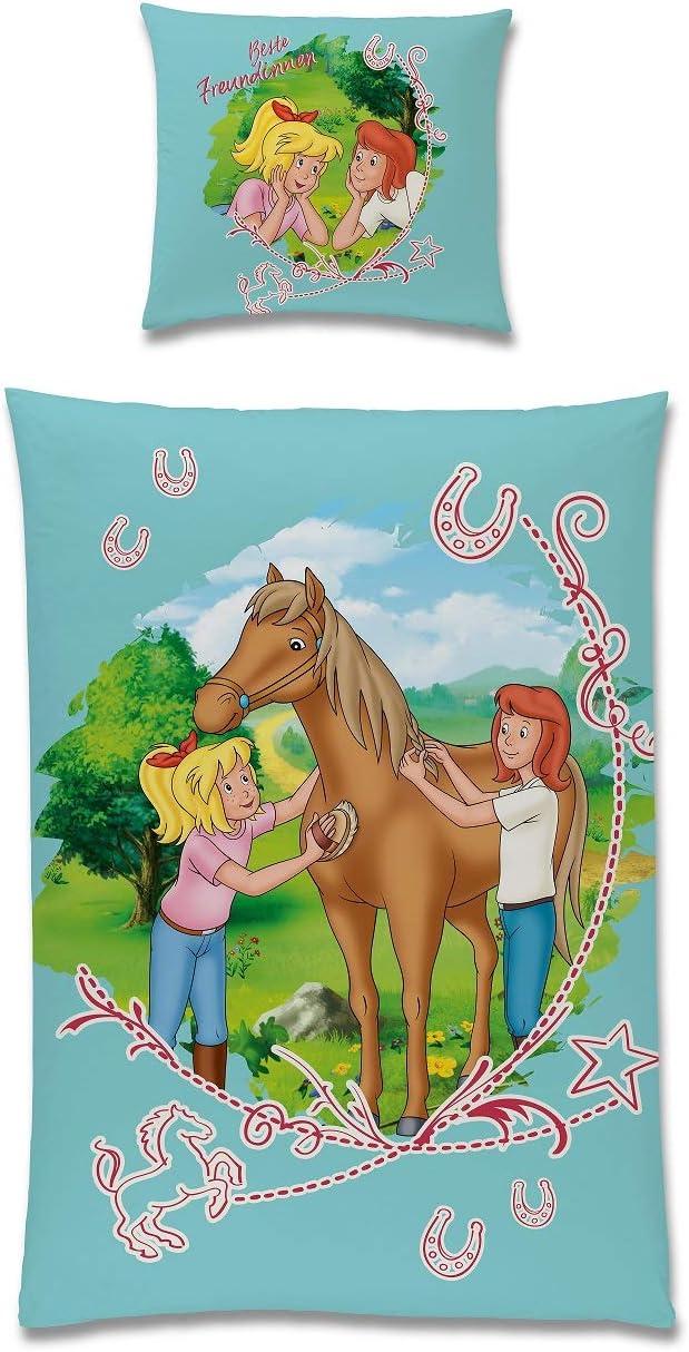 Bibi und Tina Kinderbettwäsche für Mädchen 135x200 80x80 cm Türkis mit Pferden aus 100% Baumwolle