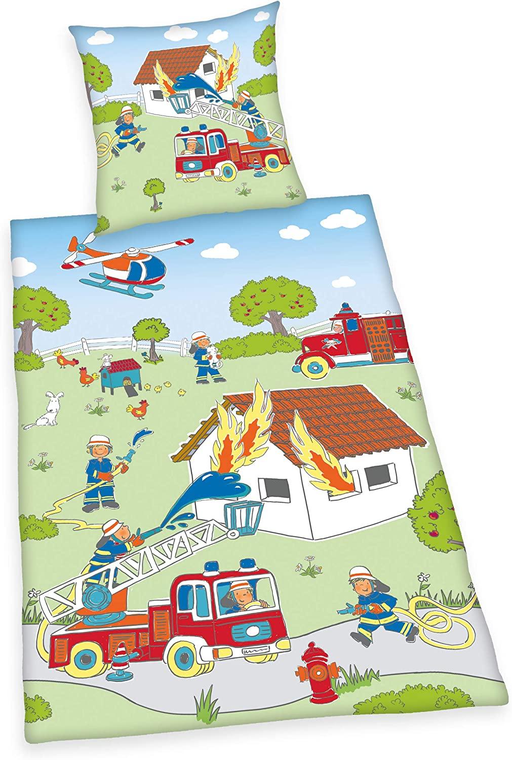 Herding FEUERWEHR Bettwäsche-Set, Wendemotiv, Bettbezug 135x200 cm, Kopfkissenbezug 80x80 cm