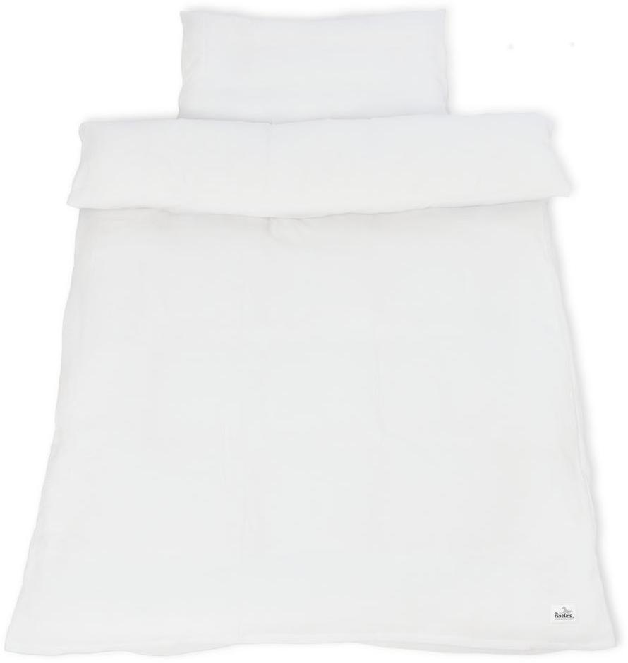 Musselin-Bettwäsche für Kinderbetten in Weiß, 2-tlg. von Pinolino. Diese schadstofffreie Wendebettwäsche entspricht dem STANDARD 100 by OEKO-TEX® und ist aus 100 % atmungsaktiver Baumwolle gefertigt. Sie ist besonders saugfähig, bei 60 Grad waschbar und bietet durch den Hotelverschluss ein schnelles Beziehen von Decken und Kissen. Das schlichte Design passt perfekt in jedes Babyzimmer. **Highlights** - Schadstofffreie Wendebettwäsche - Entspricht dem STANDARD 100 by OEKO-TEX® - Besonders saugfähig und atmungsaktiv - Bei 60 Grad waschbar - Schnelles Beziehen von Decken und Kissen durch Hotelverschluss **Produkteigenschaften** - Farbe: Weiß - Material: 100 % Baumwolle - Maße: Bettbezug 100 x 135 cm, Kopfkissenbezug 40 x 60 cm - Waschanleitung: Waschbar bei 60 Grad - Verschlussart: Hotelverschluss - Schlichtes Design, universal kombinierbar **Lieferumfang** - 1 x Bettbezug 100 x 135 cm - 1 x Kopfkissenbezug 40 x 60 cm - Ausschluss von weiteren Produkten