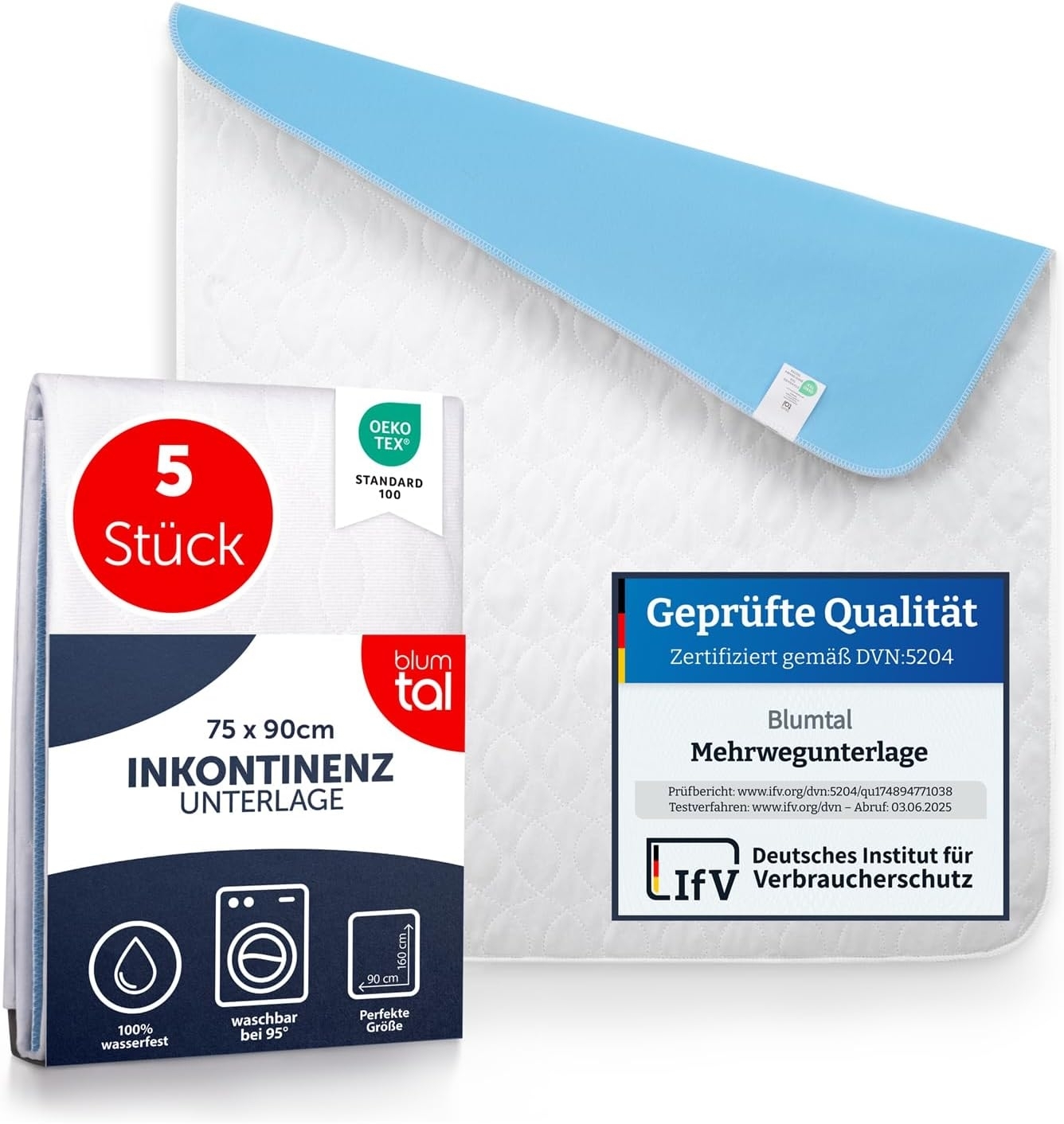 | Name | Blumtal® Inkontinenzunterlage waschbar 75x90 cm - Betteinlage für Babys - OEKO-TEX zertifizierte Inkontinenz Bettunterlage für Babys - Bettunterlage wasserdicht - Inkontinenzauflage 75x90 cm - 5er Set |