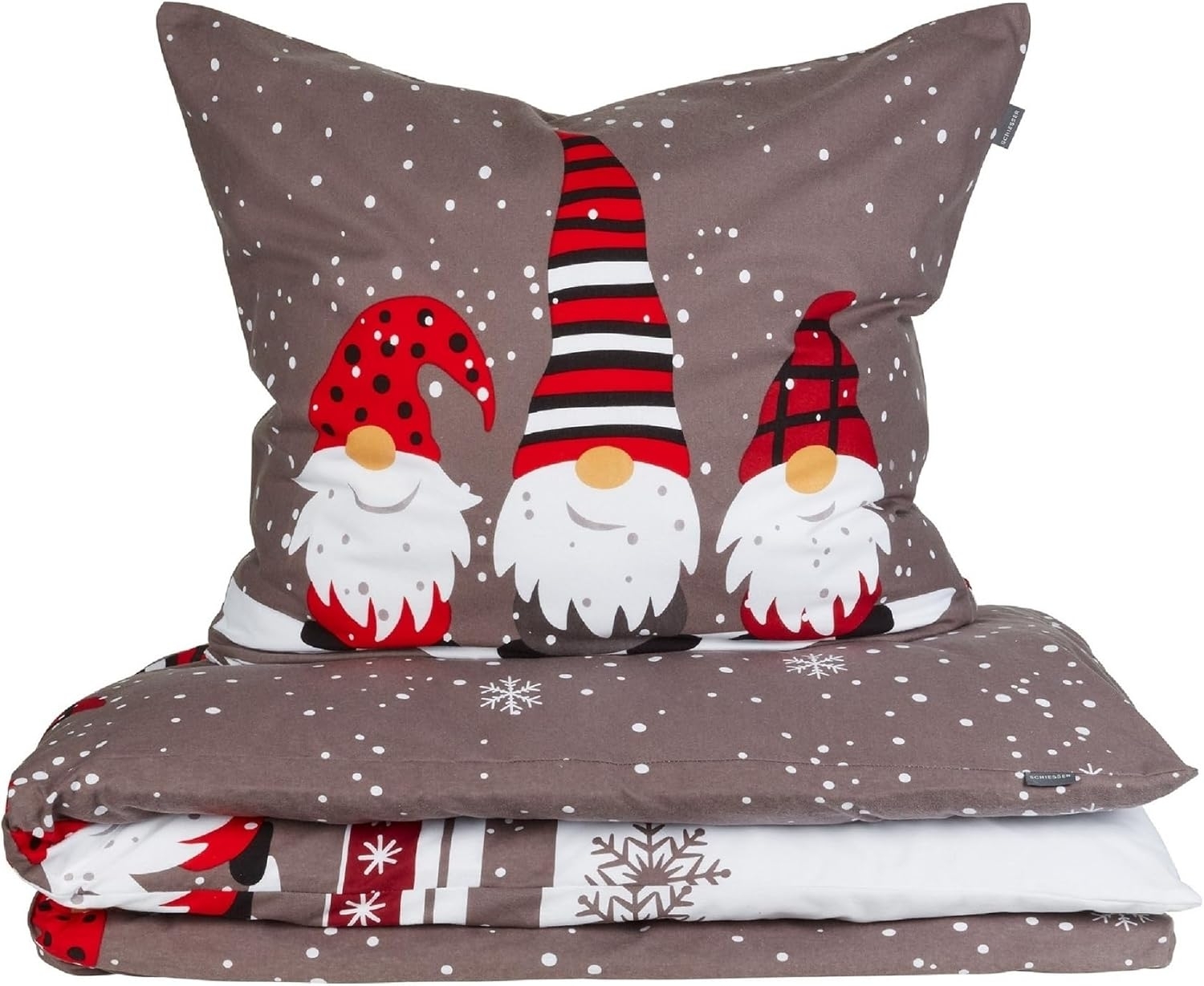 Schiesser Bettwäscheset Wichtel - Feinbiber - 2-teilig - 155 x 220 cm - Grau