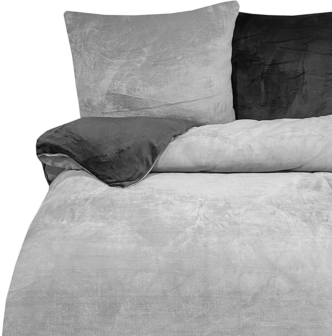 in Bettwäsche SetsModerne Plüschbettwäsche mit Reißverschluss - einfarbigwendbar & warmhaltend Grau 155x220cm + 80x80cm Kissenbezug