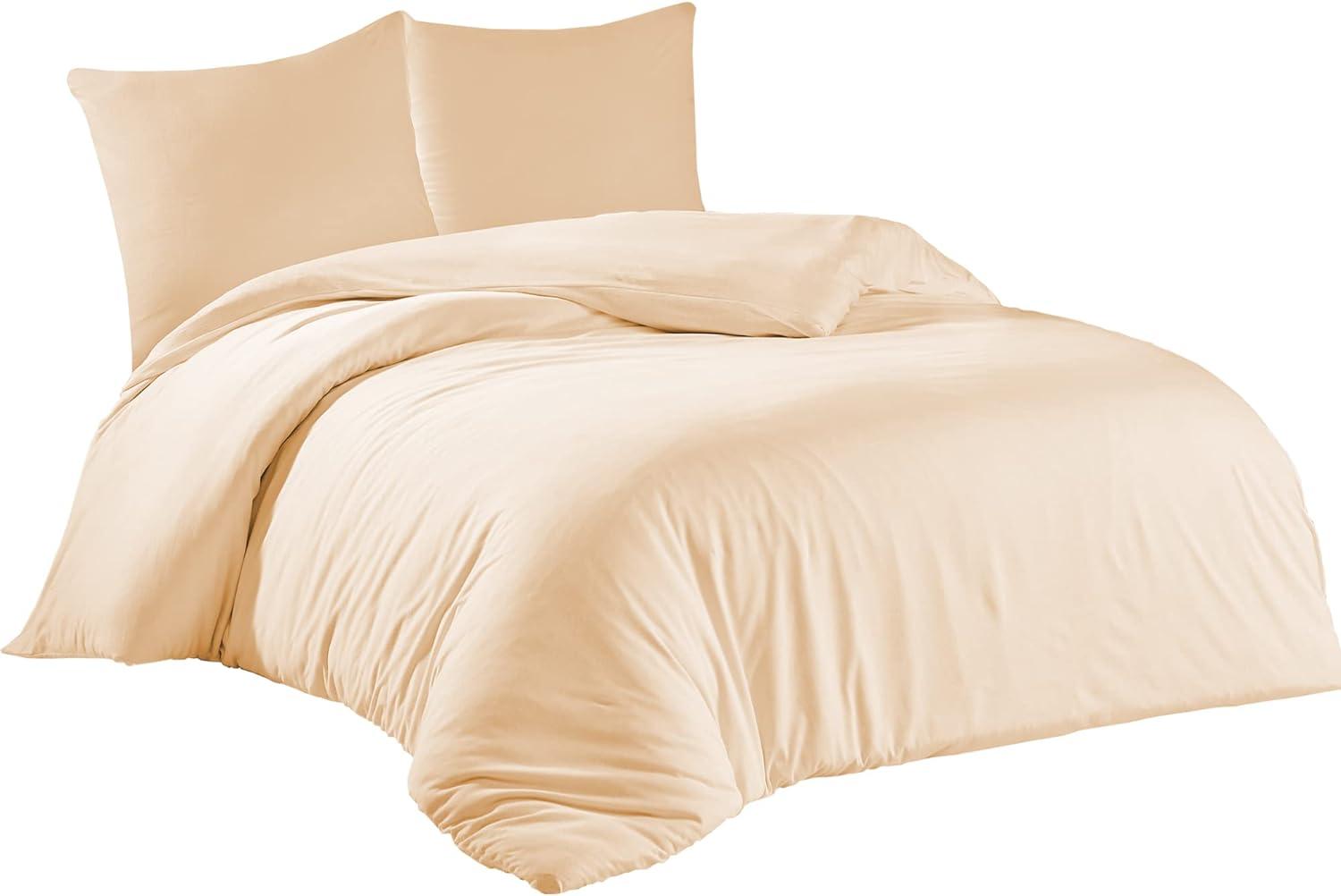 livessa Bettwäsche 200x220 3teilig Baumwolle - Bettwäsche mit Reißverschluss: Bettbezug 200x220 cm + 2er Set Kissenbezug 80x80 cmOeko-Tex Zertifiziert, aus%100 Baumwolle Jersey (140 g/qm), Beige