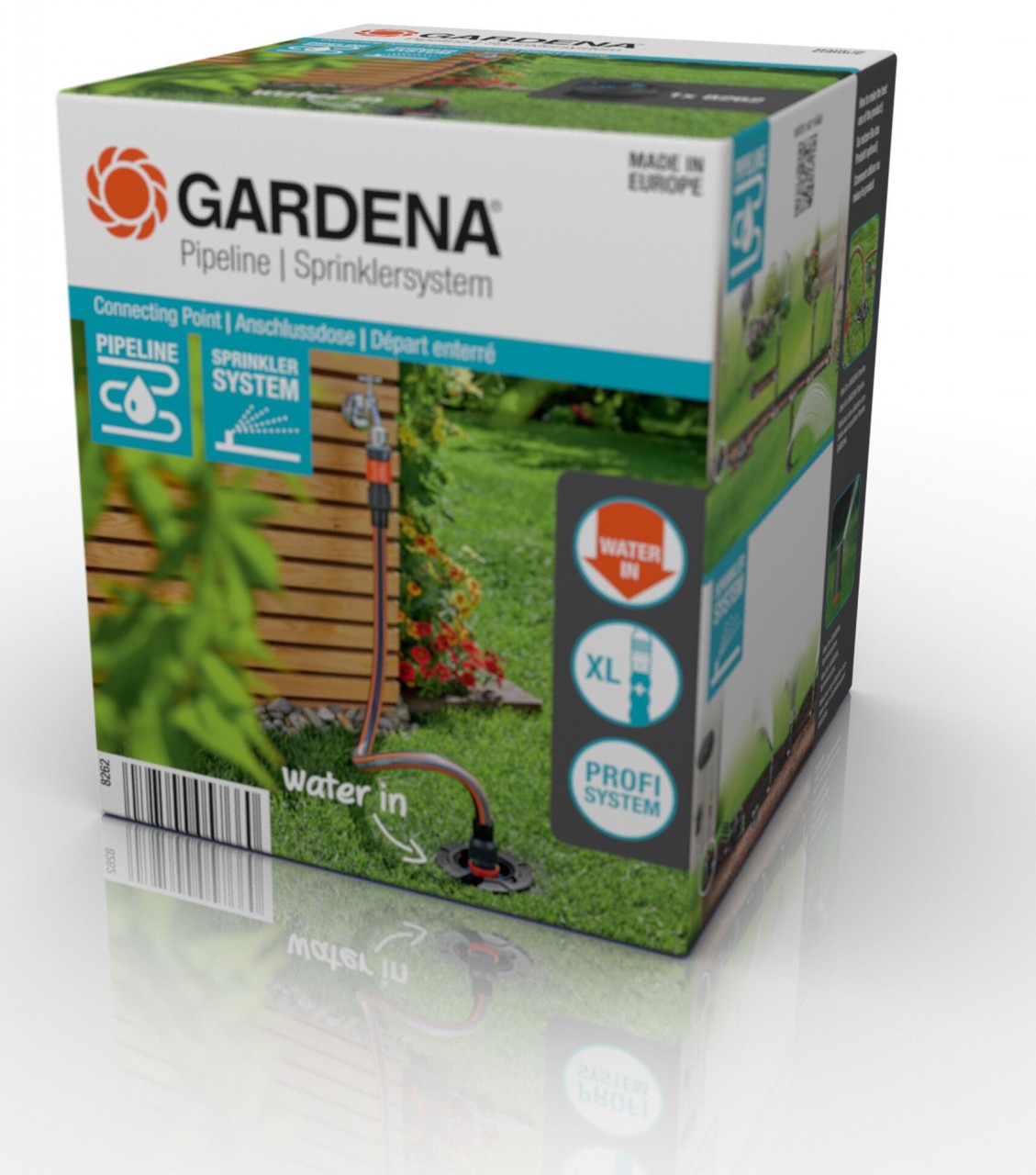 - Die GARDENA Anschlussdose 08262-20 ermöglicht eine sichere Verbindung vom Wasserhahn zu unterirdisch verlegten Rohren und bildet den Startpunkt des Sprinklersystems.